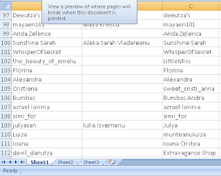 Anca, cam asa vreau sa "ordonez" si eu participantele la giveaway-ul meu. Eu ma gandisem sa le notez pe hartie, dar e mai buna ideea ta. Nici nu ma gandisem sa le notez in Excel. Multumesc!
